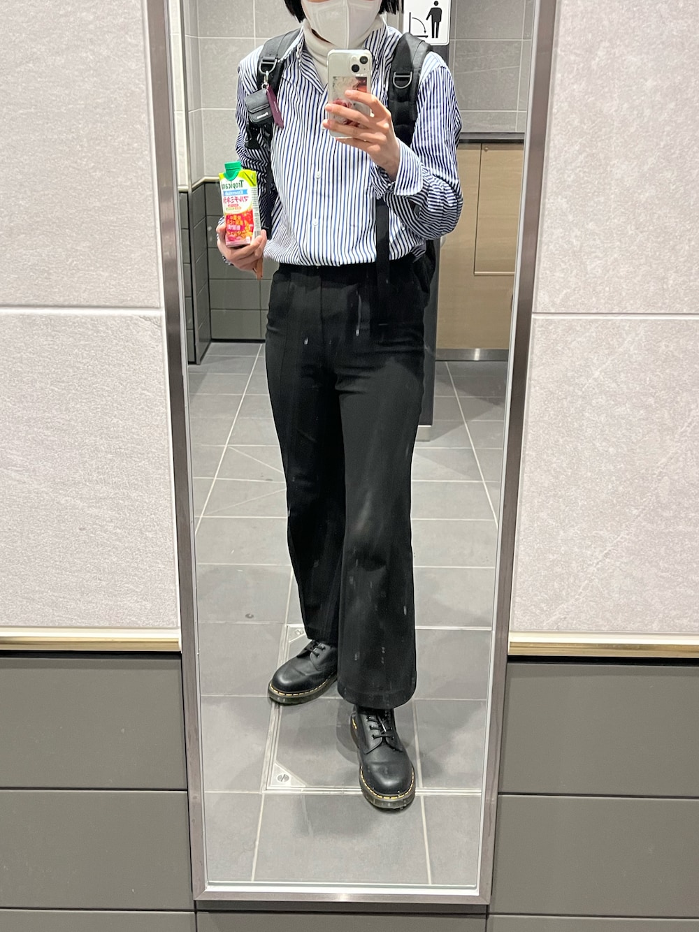 ジュースを片手に出勤コーデ