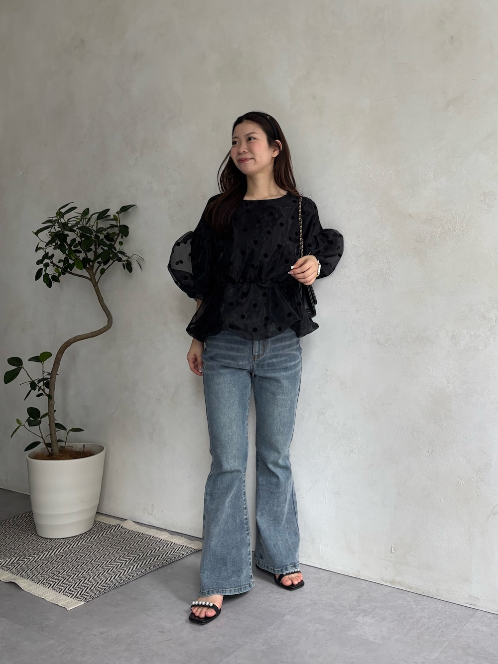 まりん(prose verse)のデニムパンツ「【美脚見え】ロゴパッチ付きストレッチフレアデニム」を使ったコーディネート
