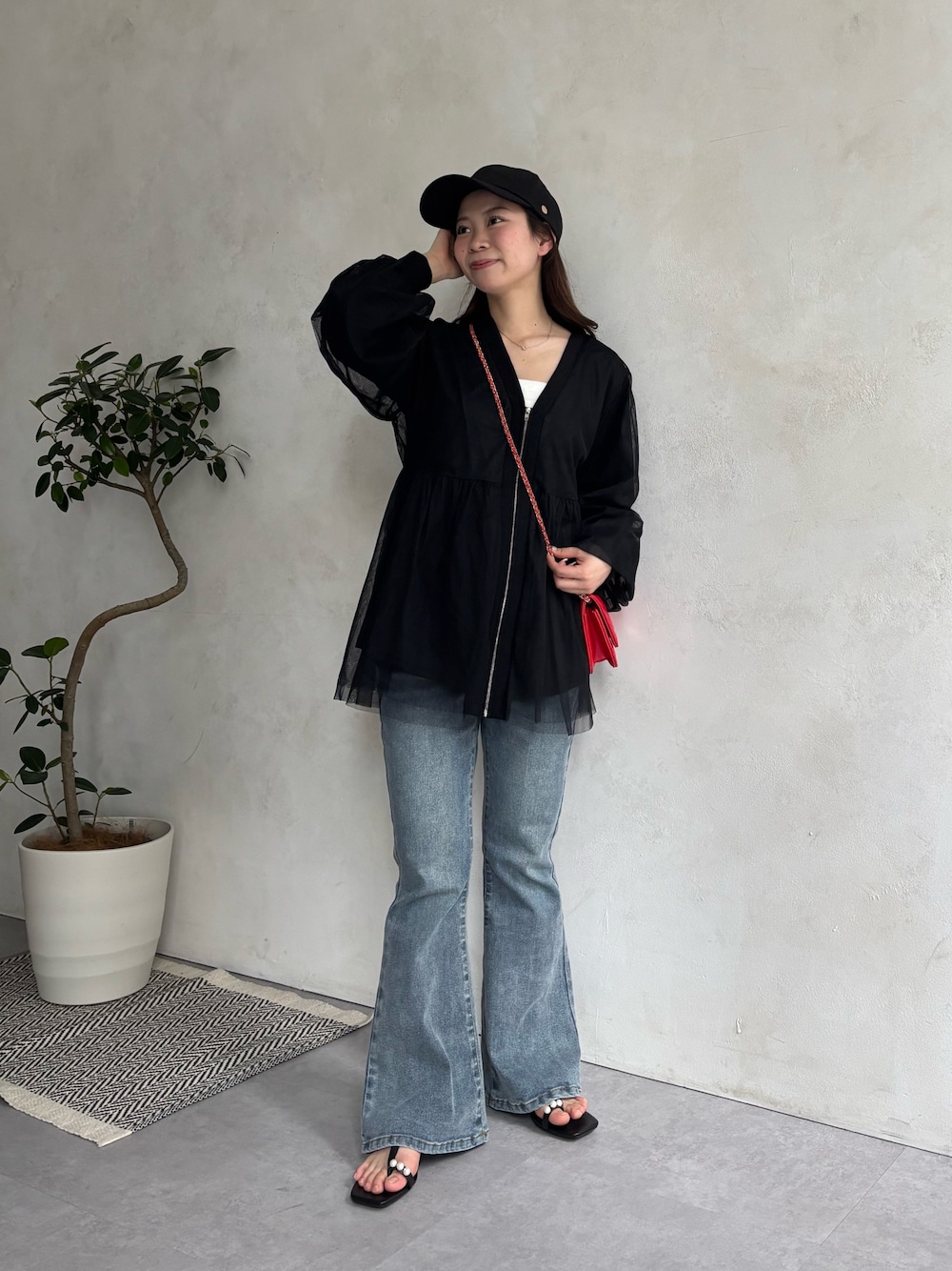 まりん(prose verse)のデニムパンツ「【美脚見え】ロゴパッチ付きストレッチフレアデニム」を使ったコーディネート