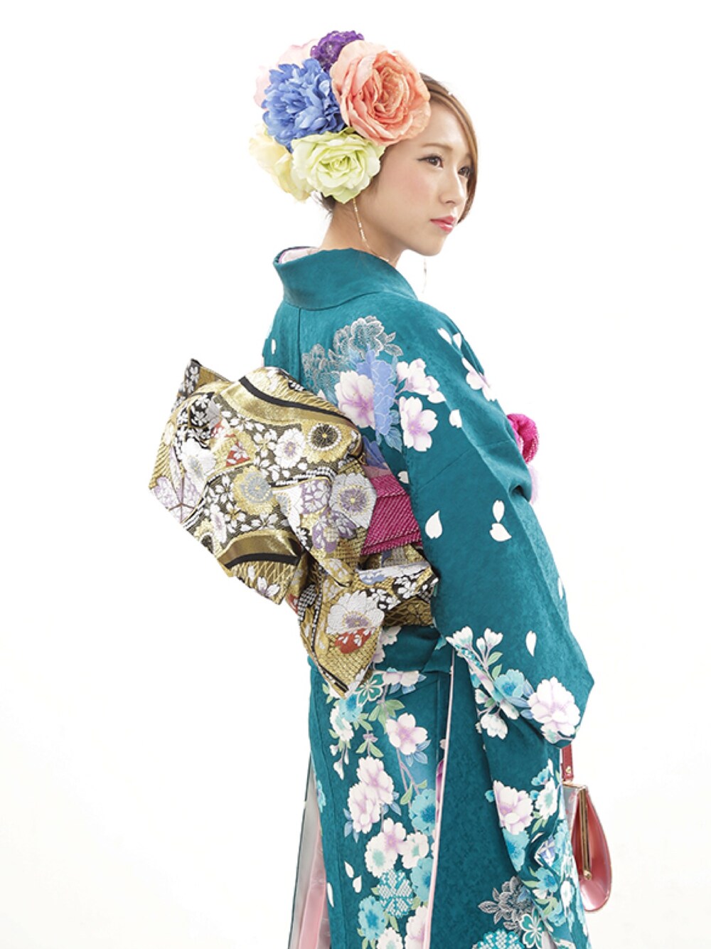 成人式の思い出にフォトスタジオへ。 振袖よりも花をメインにしました!わら