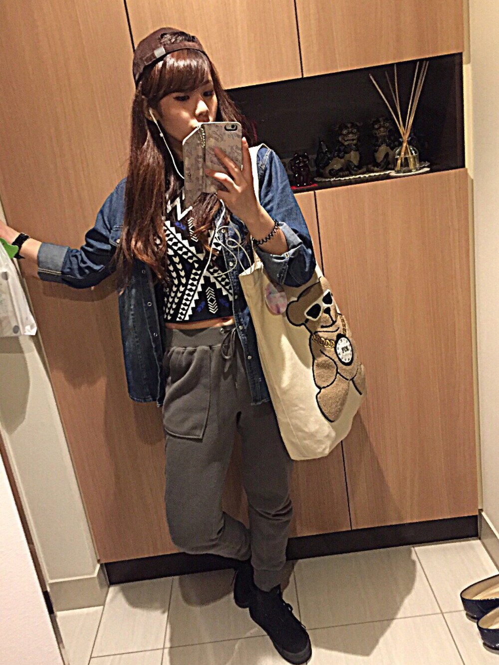 おねむのトートバッグを使ったコーディネート