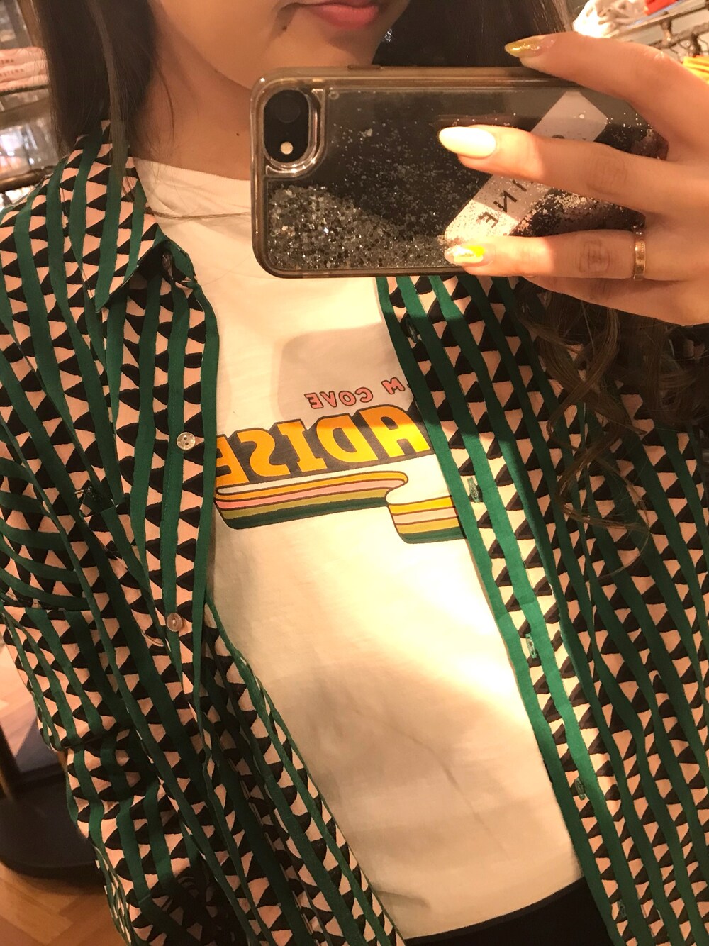 夏まで羽織れる グリーンのシャツ🥺 白Tとあわせるのは てっぱんですね😊