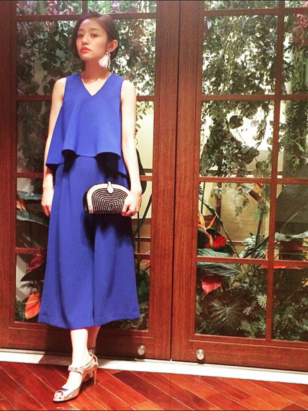 鮮やかなブルーが目をひく cameoのセットアップドレス ブラックドレスに飽きてしまった方、おすすめです! cameo フレアトップス ¥14,800+tax ガウチョパンツ ¥15,800+tax
