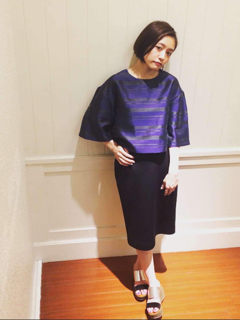 コーディネート次第でパーティースタイルにもなる万能トップスです◎ cameo ショートトップス 15,800+tax THE SURREY ハイウエストスカート ¥15,000+tax