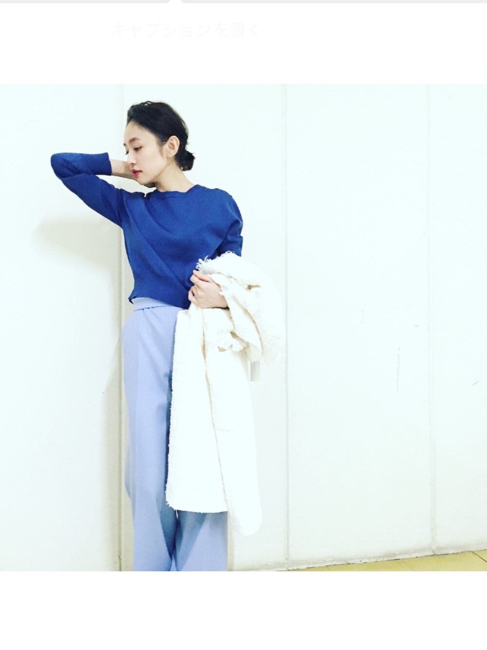 目の覚めるような ブルーの組み合わせ。 お気に入りのセットです◎ THE SURREY ツイードコート ¥63,000+tax コットンニット ¥16,800+tax ウールパンツ ¥14,000+tax