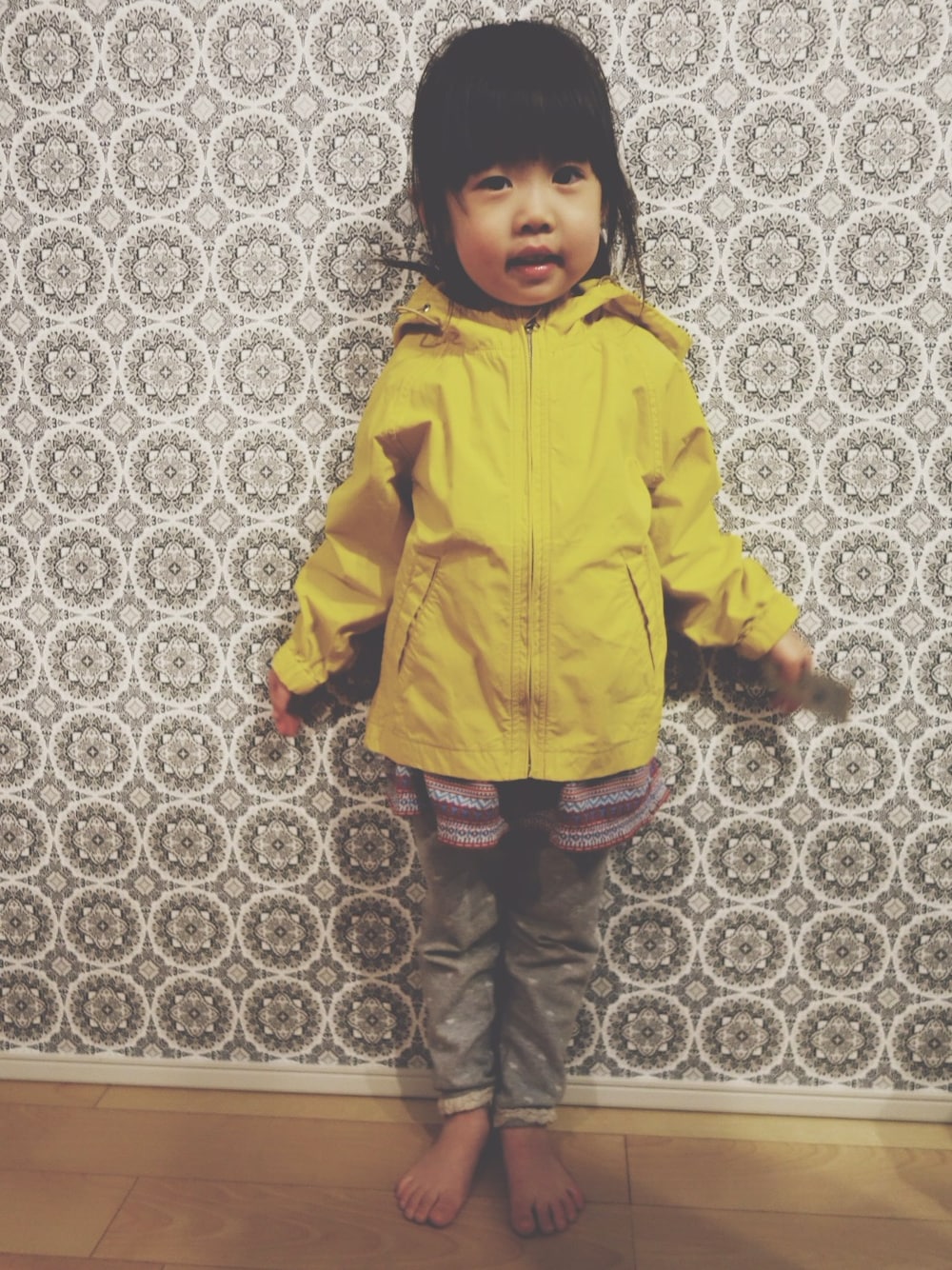 保育園用のパーカーGET☺︎ 珍しく黄色‼︎ リュックはMEIのミニーのイラスト付き‼︎