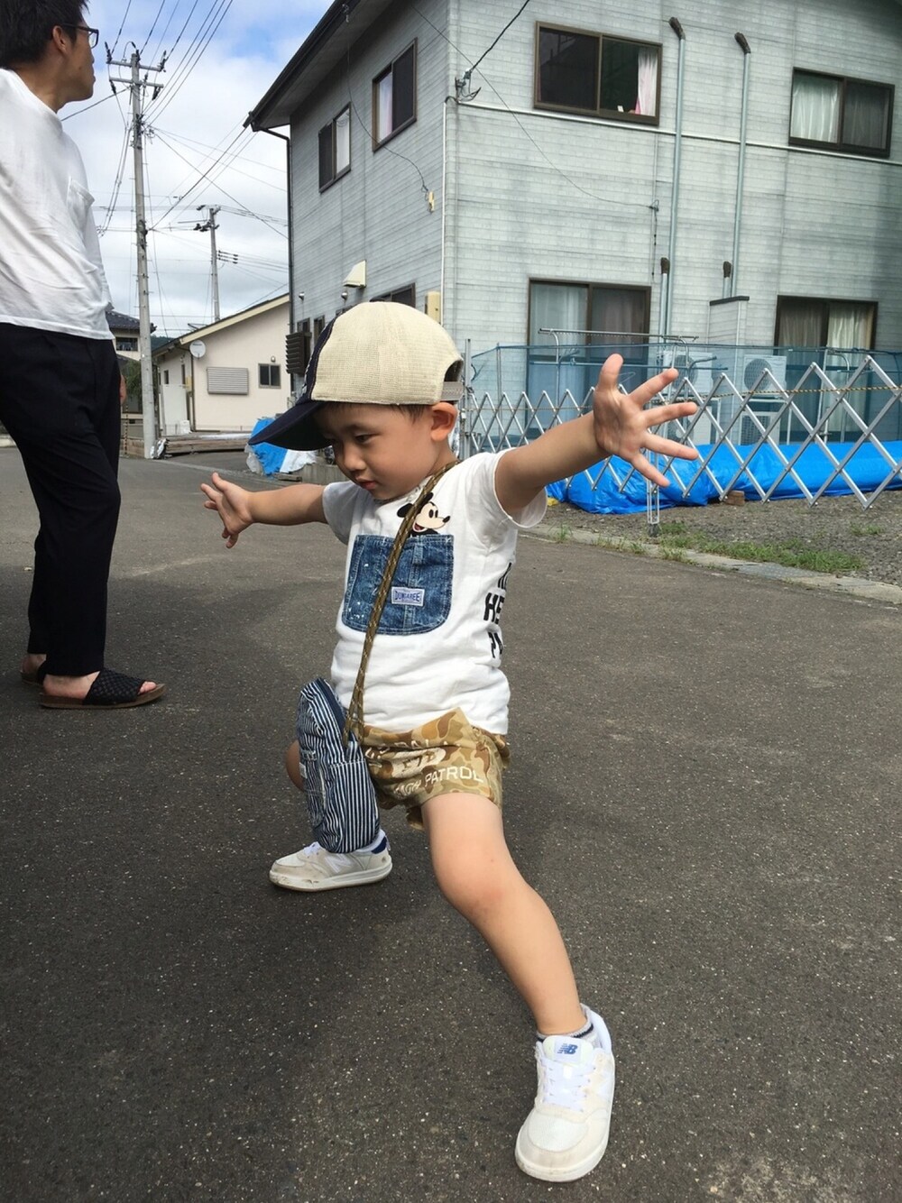 背景悪いな〜〜…ビニールシート笑 被写体の角度もポーズも中途半端だし パパ見てねーし笑 でもあんまいいのなくてコレ。。 このNBもこどもビームスで購入。 また行きたいな〜〜。 パンツは90だけどもう終わりかな。悲。