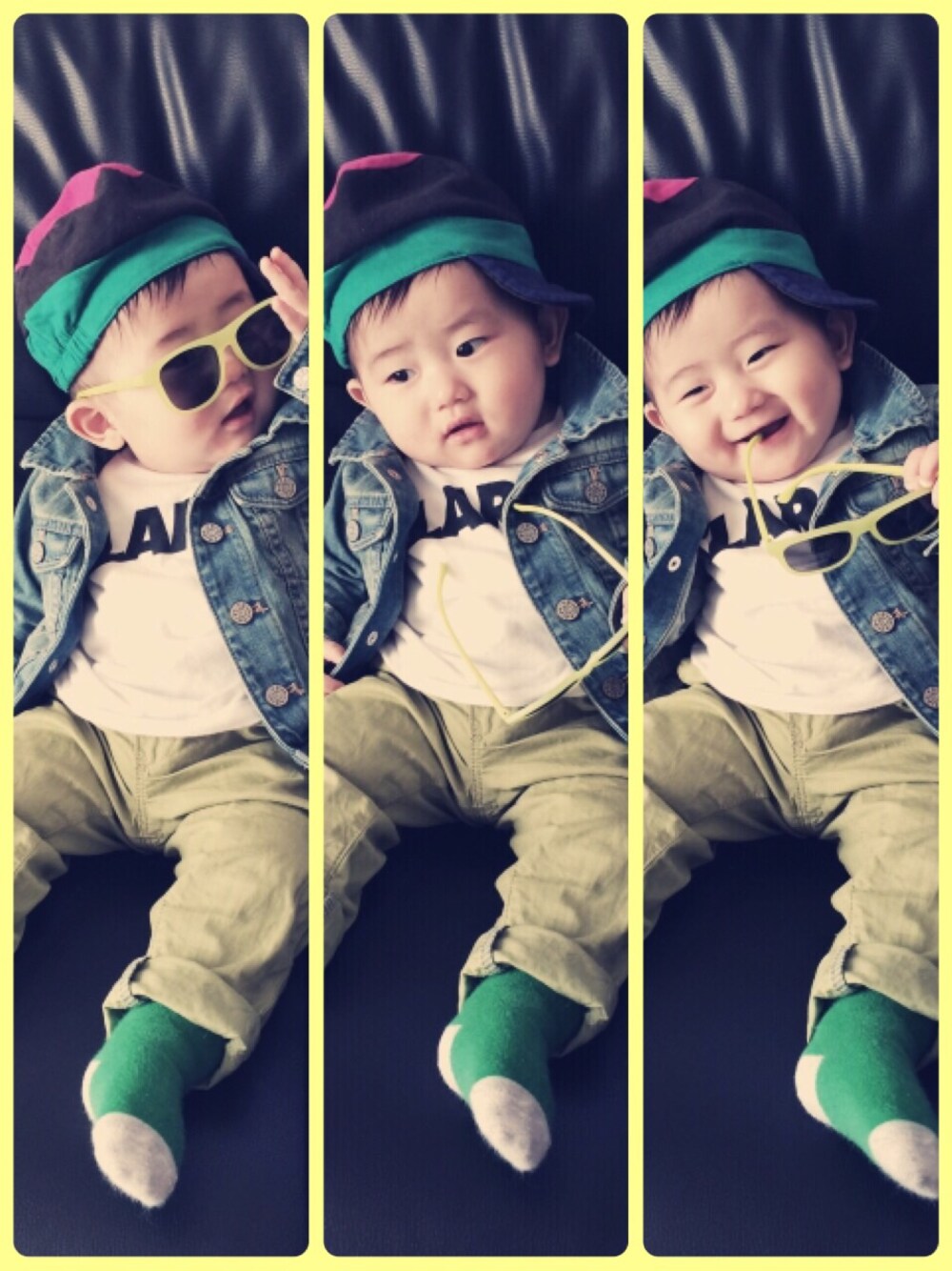 キャップ F.O.(JUNK STORE) サングラス&ソックス H&M タグ乗りでまたまた親バカ撮りしちゃいました(^^;;今回はパパに協力してもらい笑顔を頂きましたwサングラスかけたらPSYにw天気がイイですね。テレビ観てたらお好み焼き食べに行きたくなっちゃいました=3=