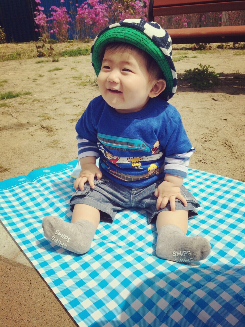 コ、コーディネートのポイント⁈← 近所の公園にて。 出産祝いで頂いたTシャツとパンツ。それぞれ着れるサイズになったので青コーデしてみました。 子供らしくてヨシ。と母は思ふ…。 シャボン玉に興奮して帰ったらご飯も食べずにバタンキュー=3