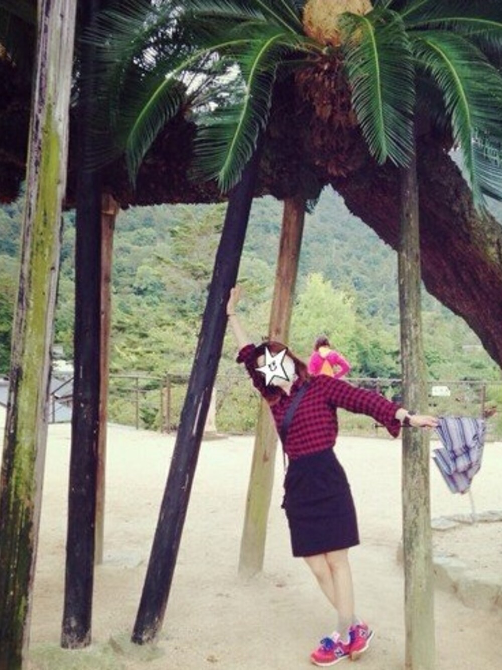 チェックシャツ:無印良品 ヘアバンド:3coins 靴下:3coins 広島ー!宮島ー!