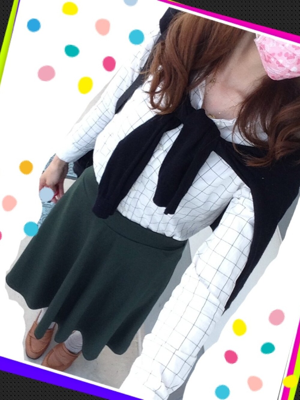 カーディガン:H&M ヒールローファー:LOWRYS FARM 今日はあったかいので薄着です。