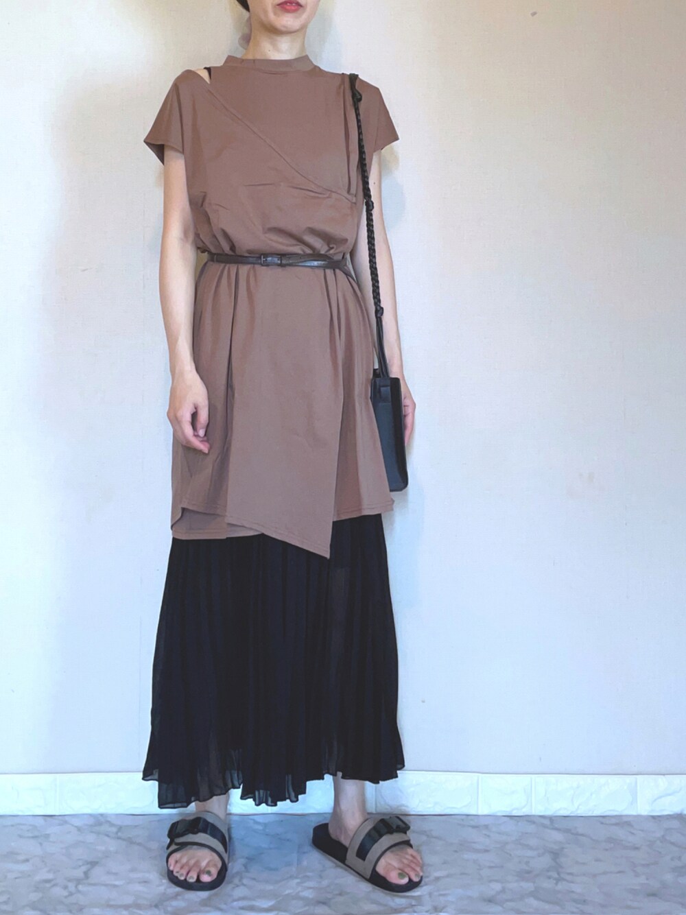 アシンメトリーレイヤードチュニック のデザインが可愛すぎて◎ プリーツパンツはスカートに見えて履き心地も抜群◎