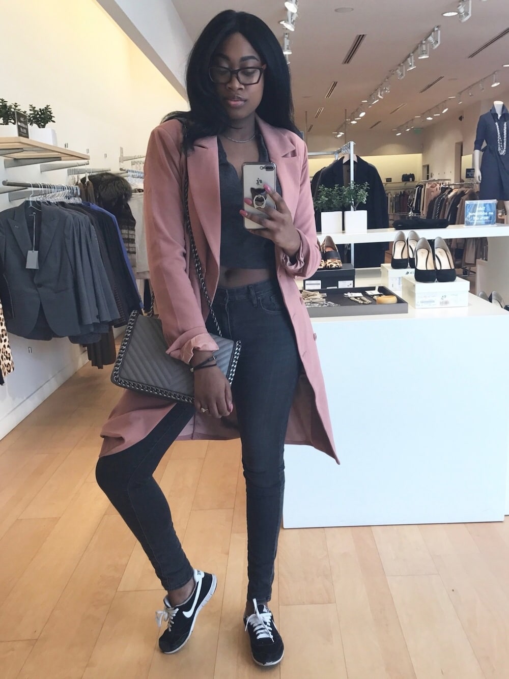 A spring inspired ootd with All grey with a splash of pink!