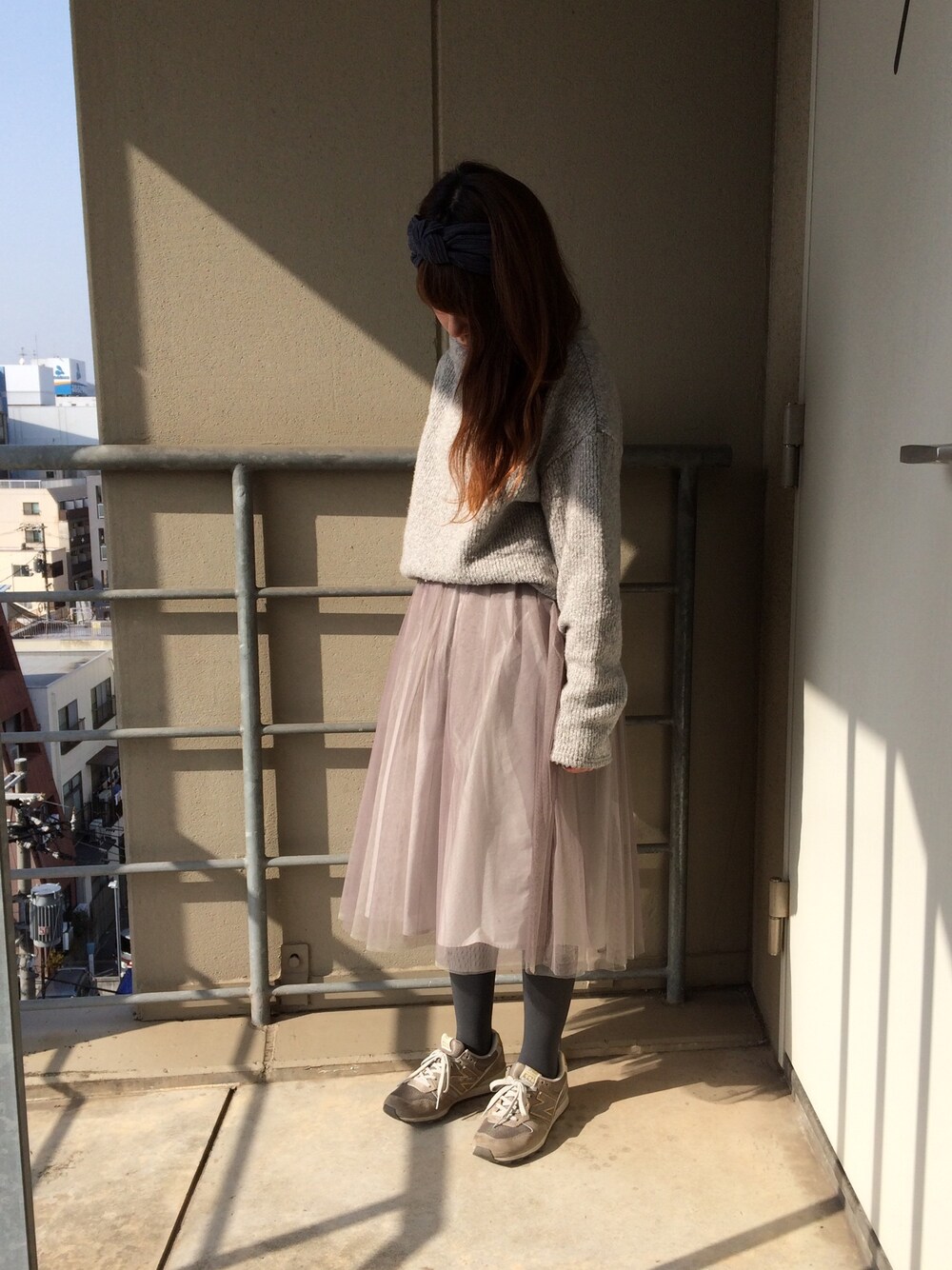 コーデュロイカチューシャ:ミスティック オールグレー!タイツ、カチューシャまできっちりグレーです( •̀ᴗ•́ )و ̑̑
