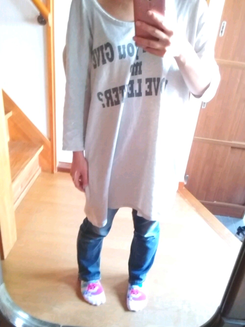 結局出掛けたから 普通にジーパン履いてカジュアルコーデ(´ー`) ほんまこのワンピース万能☆