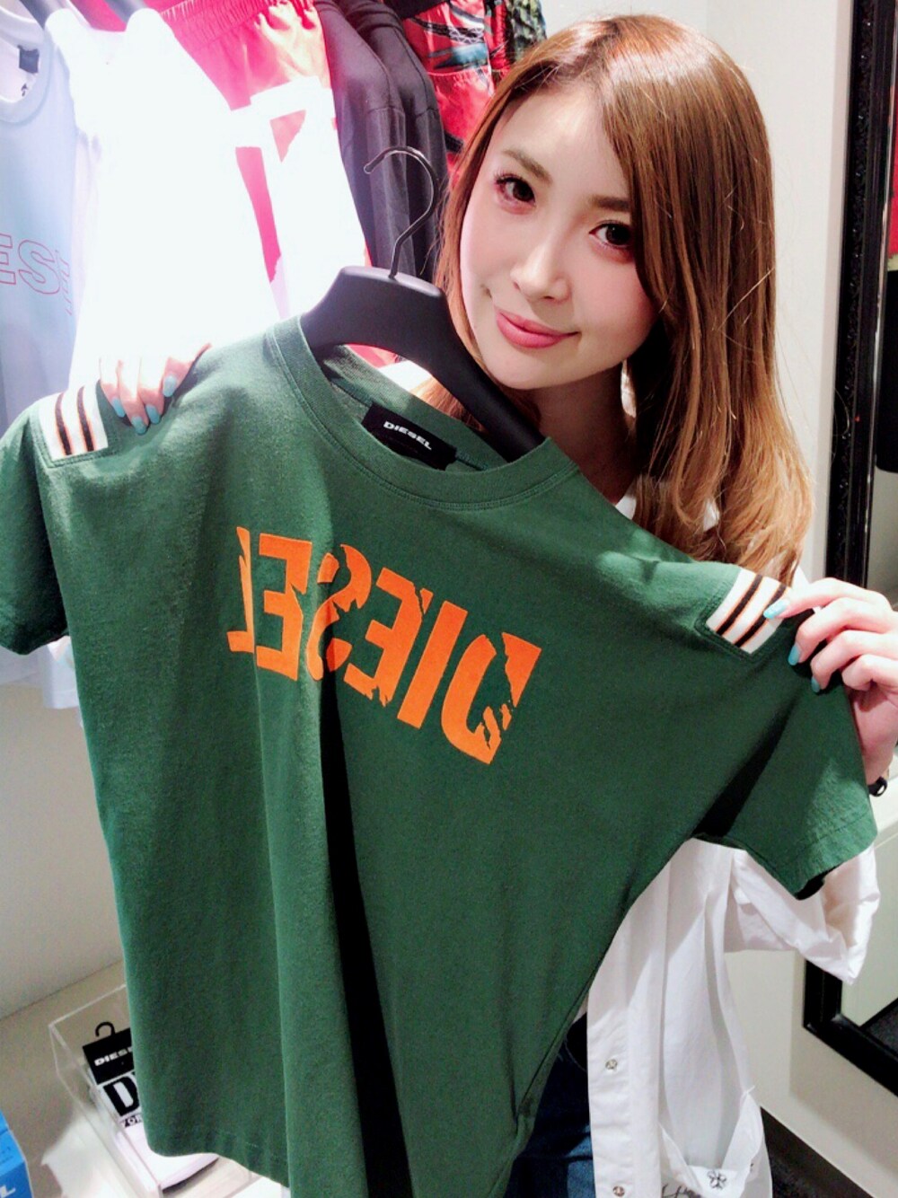 鏡でうつすとDIESELになるグリーンTシャツ。 美人スタッフさんと話ながら購入。