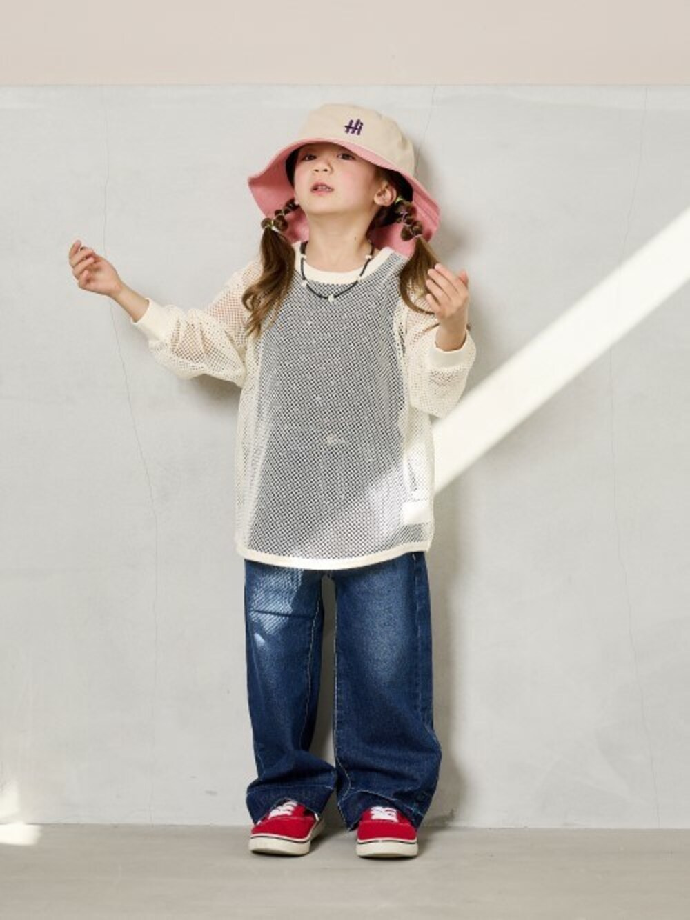 model:H106cm トレンドのメッシュアイテム♪ 大きめのハットもカワイイですよね。