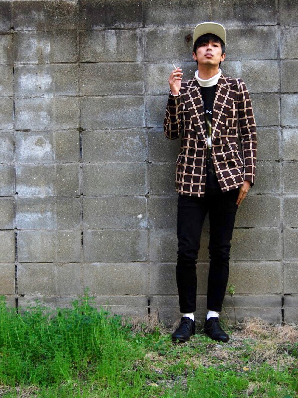 セリーヌのルックを意識したコーデです。柄ジャケットなので他はシンプルにして、それぞれの色をリレーションさせてます。