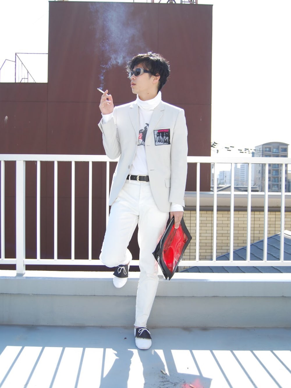 バンドtなどのロックなコーデをホワイトで統一してます。赤でリレーションしたり、ワッペン 、キルトタンでカスタムして黒もリレーション。