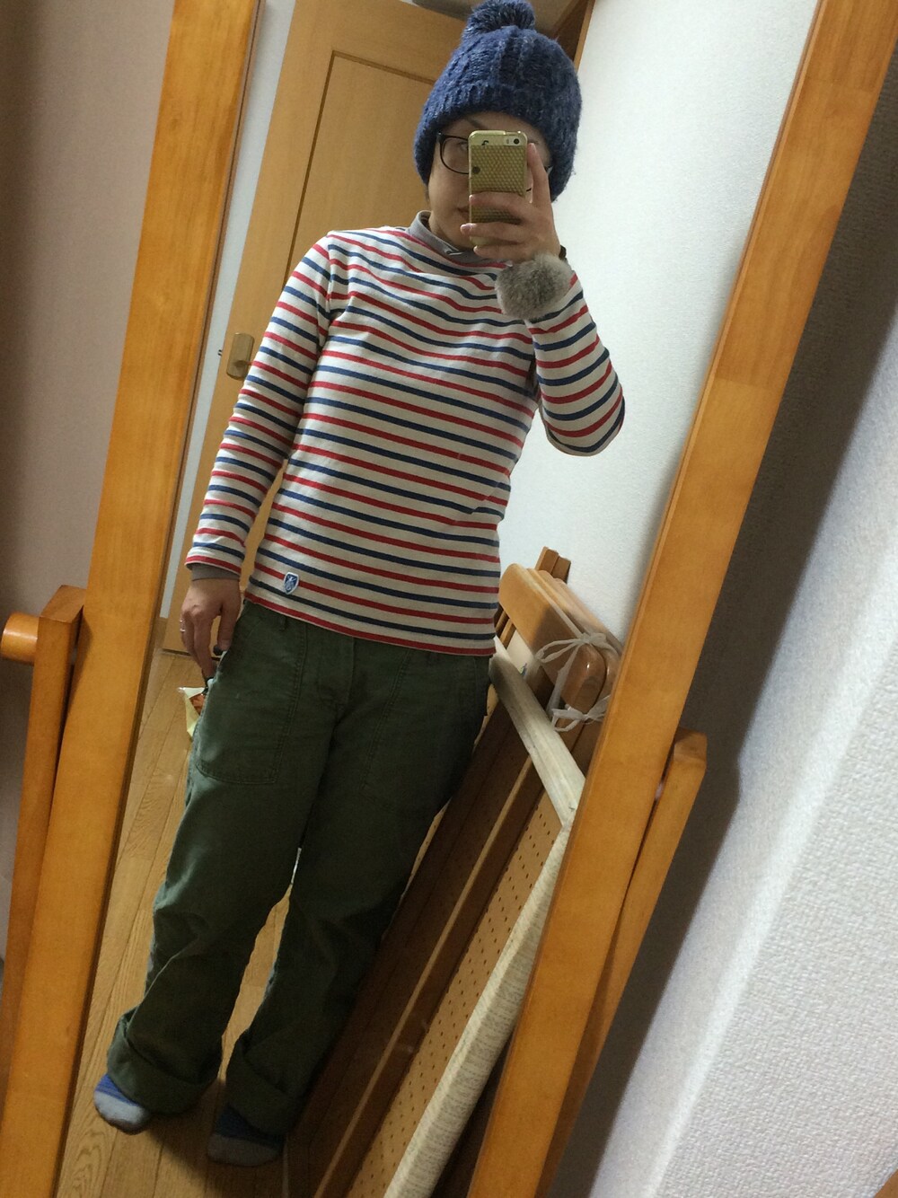 今日はorslowのパンツを古着屋さんで安く買えたので早速はきます。上は寒いのでユニクロの極暖。無地ばっかりは寂しいのでボーダーも。ちなみに靴下はユニクロBOYSの極暖。