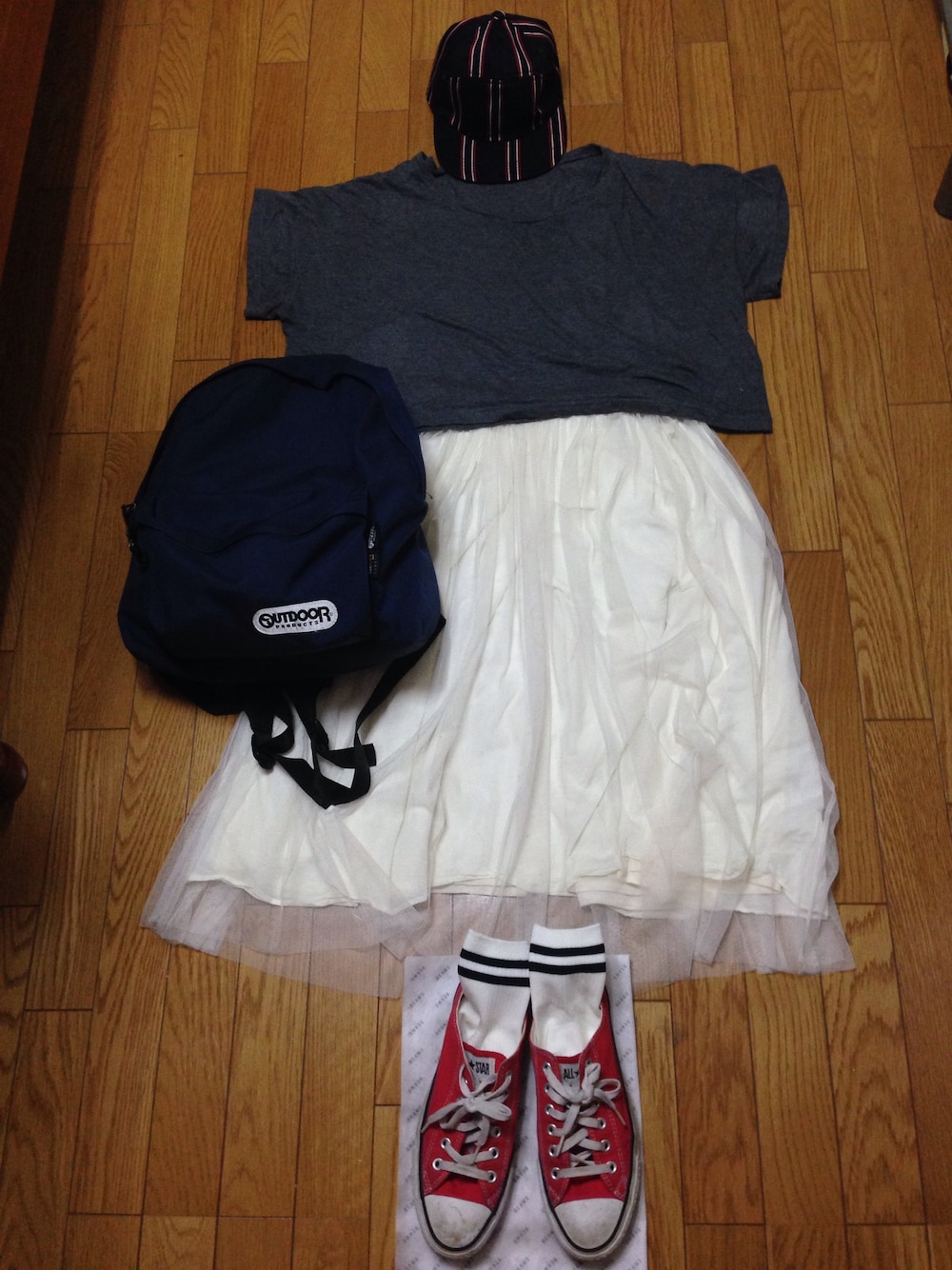 誰かの真似コーデのやつを自分流にしてみました! やっぱりこの時期にグレーとか着るとすごく背中が…笑 あー早く涼しくならないかな!笑