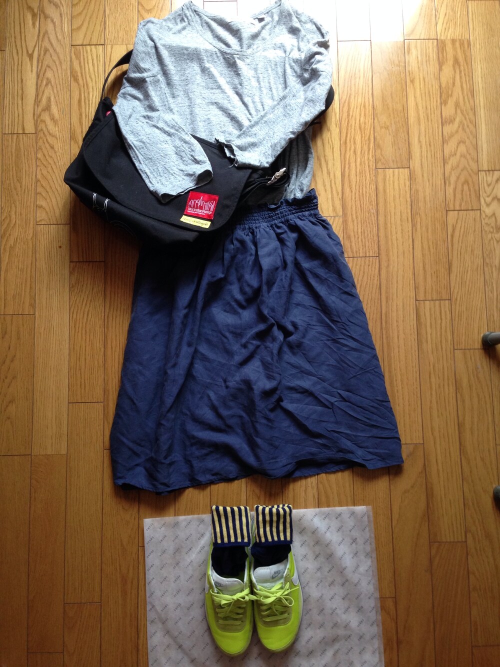 初投稿です(^o^)! 店頭でキュンとして買ったお気に入りのアイテムだけで合わせたので自分好みなだけな感じに…笑 隠れて見えませんがトップスはスカートにinしてます 真夏はグレーのカットソーを白Tシャツに中タンクトップで着たい