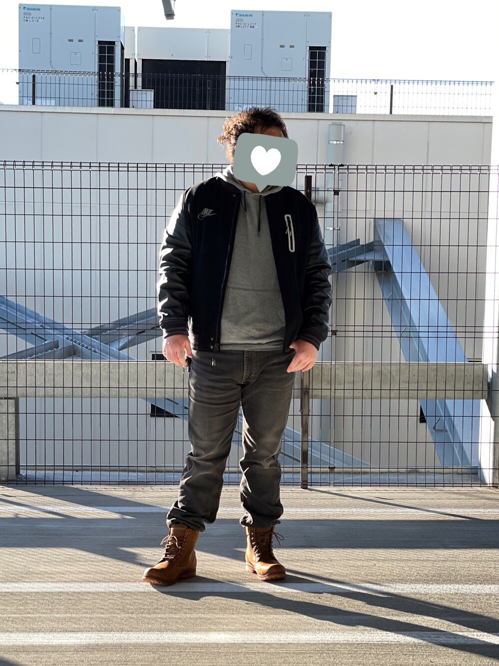こんにちはこんばんは! いつもご覧いただきありがとうございます!🐈 今回はNIKEスタジャンとパーカーのコーデ! ゆったりとしたシルエットのデニムに ティンバーを合わせました。 ストリート感もありつつパーカーでラフな感じも!