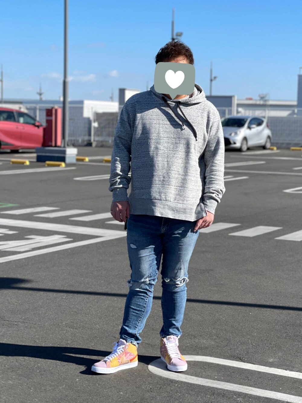 こんにちは、こんばんは! いつもご覧いただきあありがとうございます!🐈 今回は休日のラフスタイルでダメージデニムとゆったりとしたパーカーを合わせました! 靴はナイキのピンクやマルチカラーがいい感じな一足をチョイス!