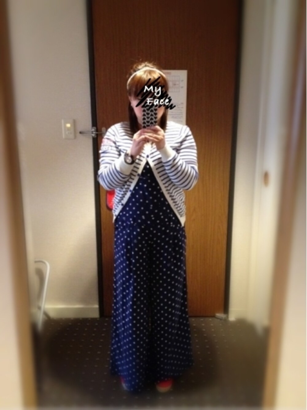 私的 マリンコーデ♡ᵕ̈ おNEWの水玉オールインワン着てみました。 この日はあいにくの雨降り☂で 裾はびっちゃびちゃになりましたが… おNEWのウェッジサンダルもびちゃびちゃ…(T_T)