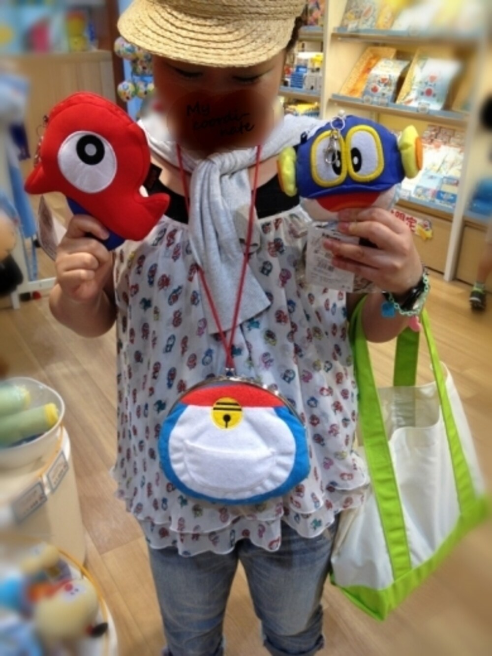 夏休み♪ 空港に遊びに行ったときのコーデ。 この日はちょ~う暑かった! 空港内にあるドラえもんカフェに行きたくて、ドラえもん柄のチュニック着ましたw 写ってないけど、デニムの後ろはスウェット素材になってます。