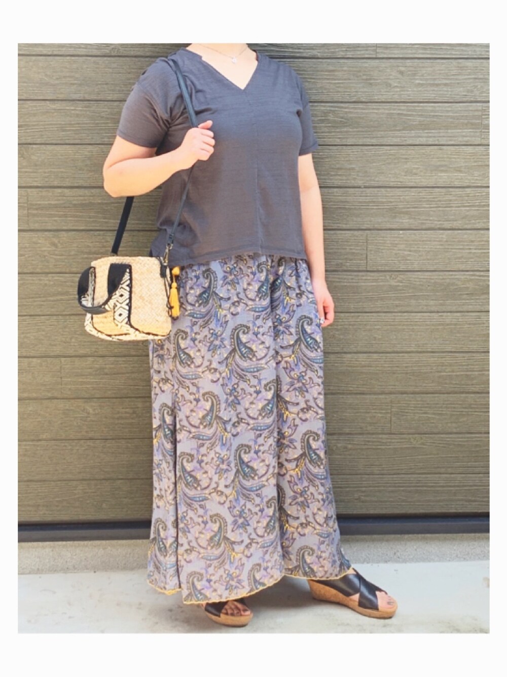 2019.07.24...☀️ GYDAのこのワイドパンツもかなり優秀です。 ぽちゃ体型でも楽に穿けるし、涼しい。 裏地もショートパンツ丈で付いてる。 デザインも夏らしくてエスニックな雰囲気にも、リゾートな雰囲気にも◎