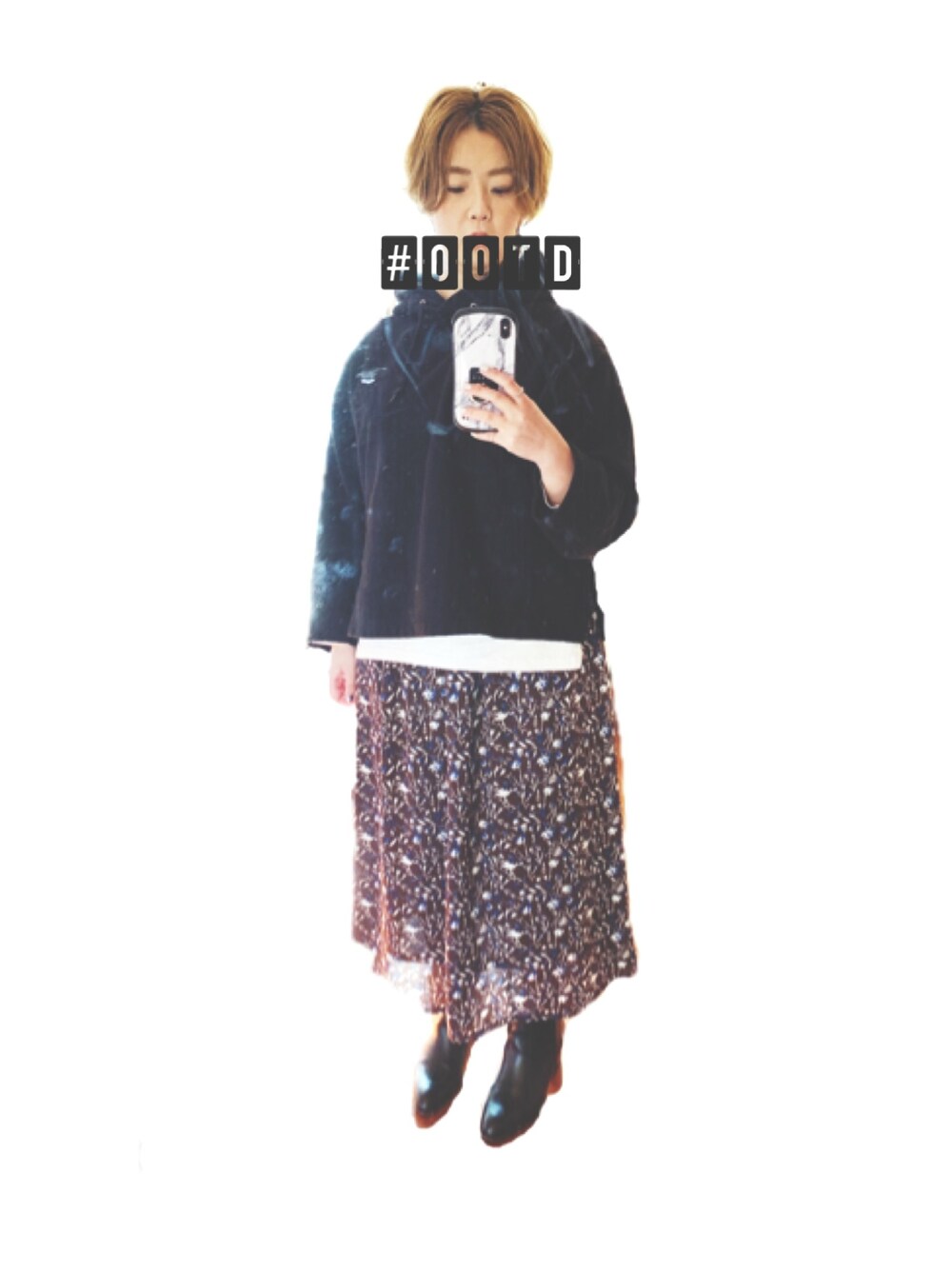 パーカーでレイヤード。 いつものメンズライク定番に花柄スカートを。 昔は花柄に苦手意識があったけれど、 パーカー合わせとかなら雰囲気が軽くなってカジュアルだから着られる。 この日もちょっぴり背伸びした女っぽいコーデ。 てか、撮った鏡が汚かった(T-T)
