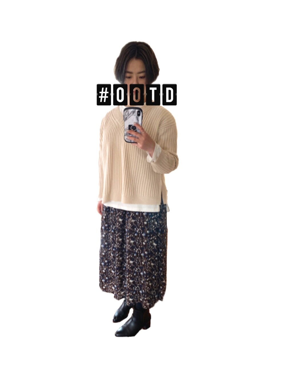・ ・ ・ メンズライク封印コーデ。 ・ ・ 意外と着回しのきく花柄スカート。 きれい目な花柄プリーツスカートだけど、青い花がちょっとポイントになる🟦