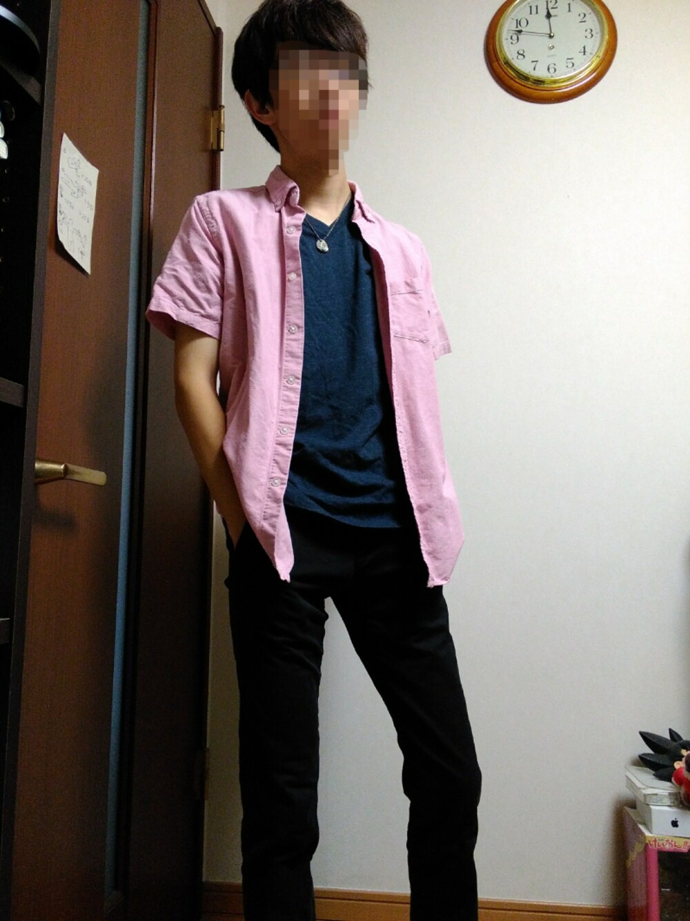 ピンクシャツを目立たせるために、全体的に暗い色を着ています。 個人的にピンクシャツはお気に入りなので他の方の着こなしも参考にしていきたいです笑