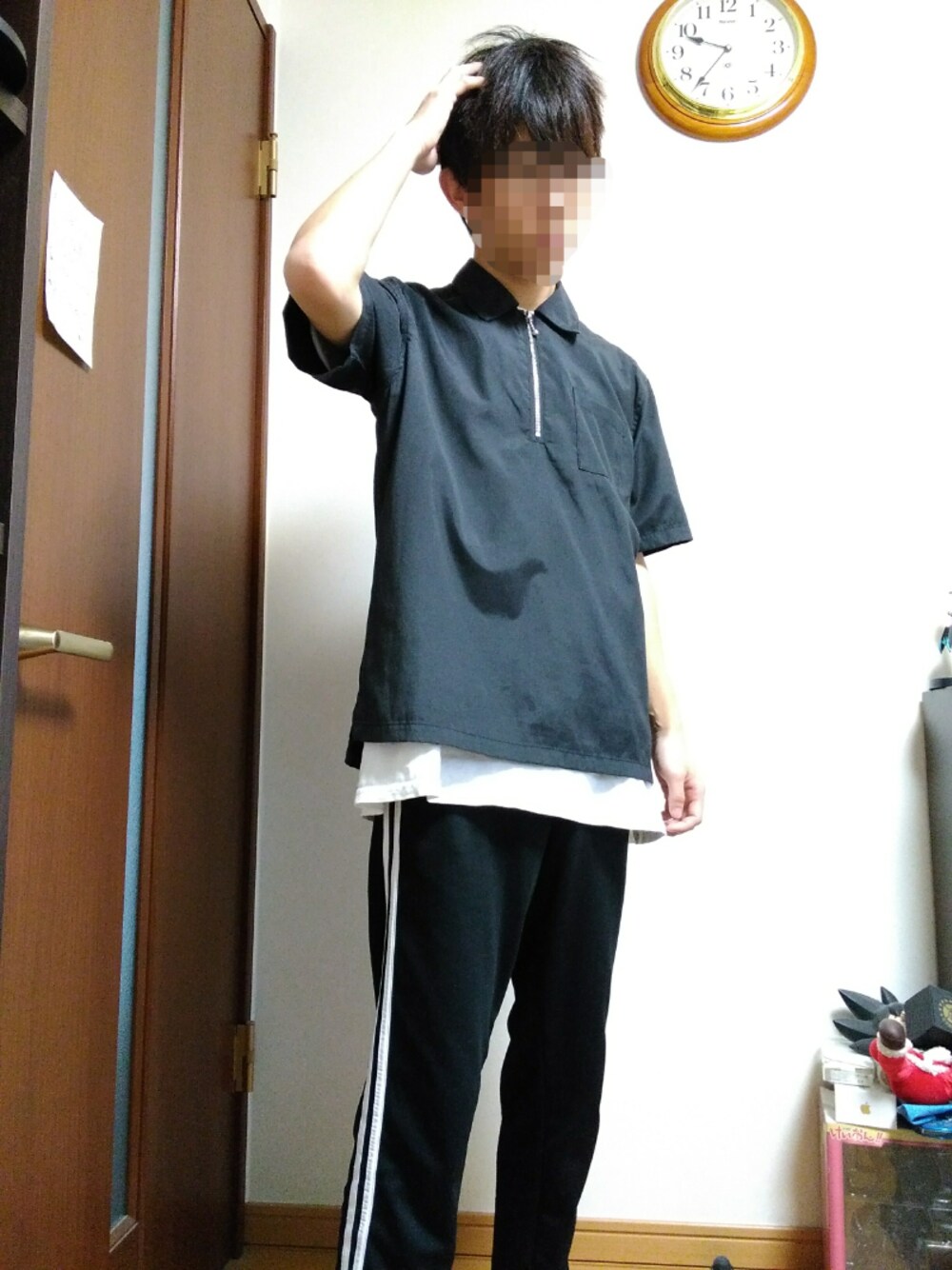 また暑さが戻ってきましたね…。そんな今日は黒白のモノトーンコーデです。いつも黒白ですね…笑。トップスのハーフジップがお気に入りで、リングではなく小さや丸である点が可愛らしくてお気に入りです!