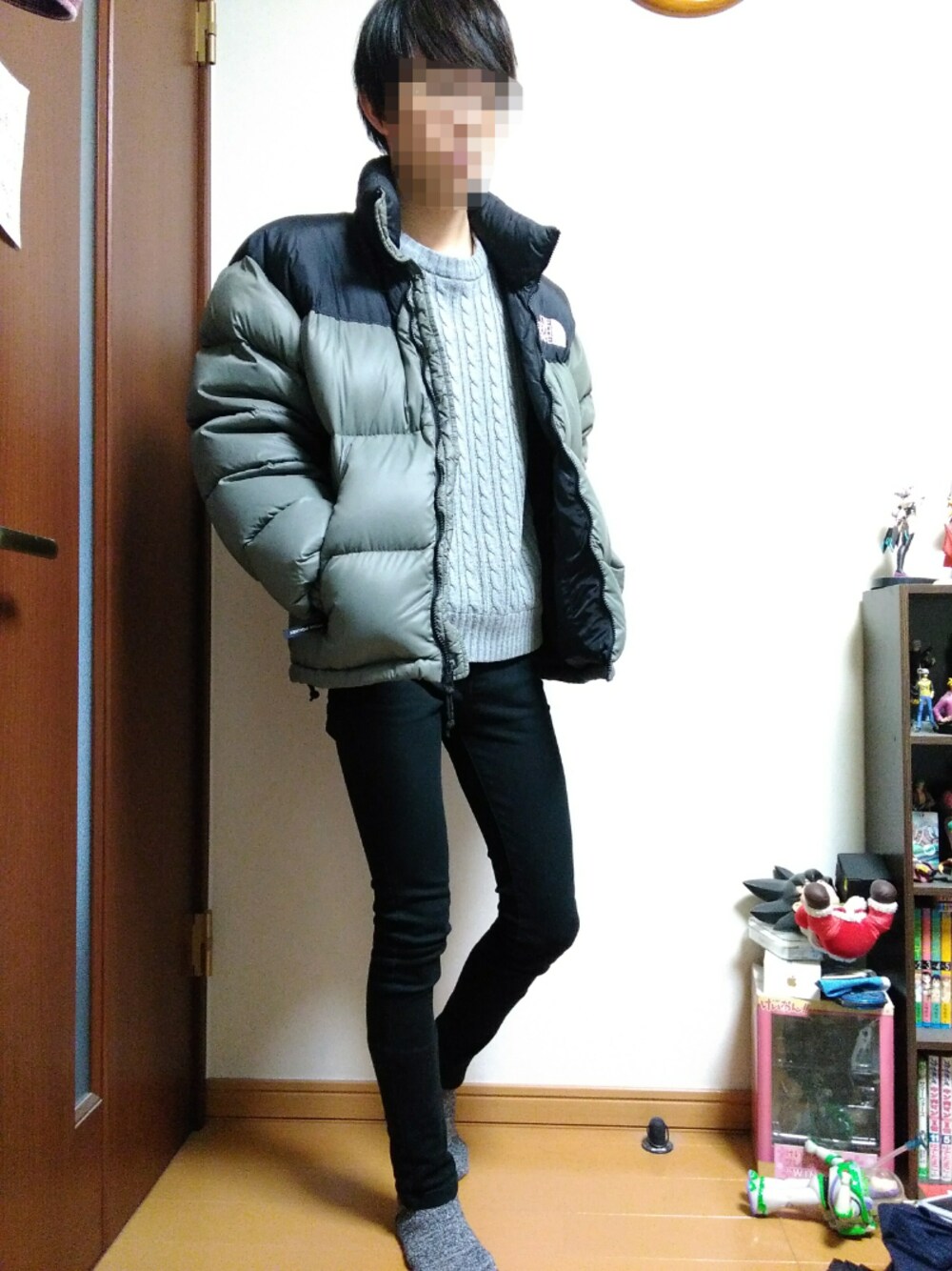 THE NORTH FACEのダウンを来てみました。がっちりとした印象を与えるので、黒スキニーと合わせてVシルエットにしました。 なかなかこのダウンを着こなすのが難しいですね笑