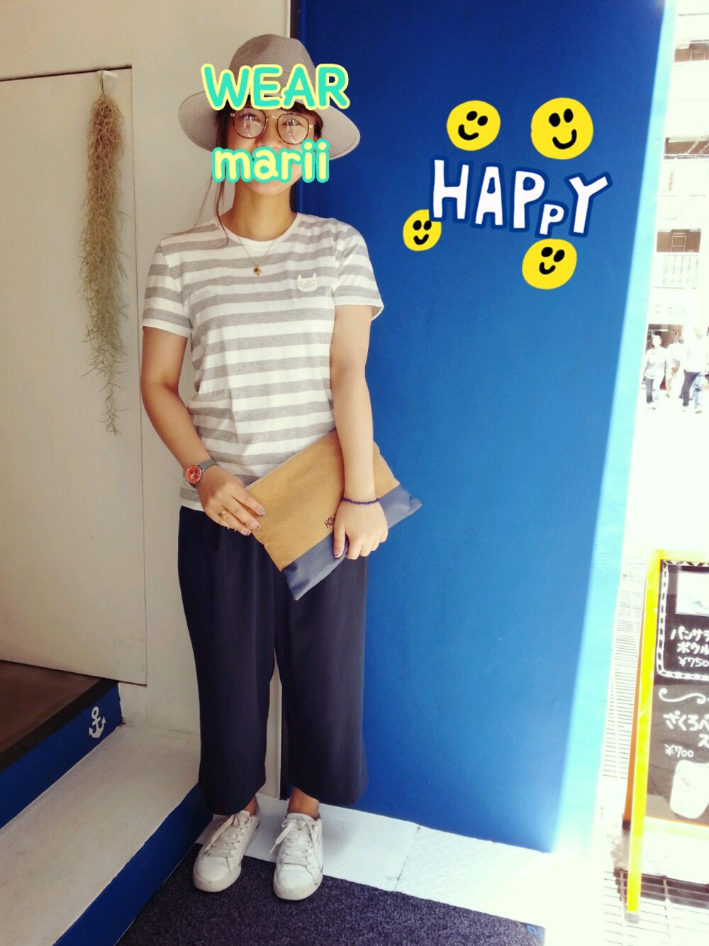 こんばんは! 今日は仕事場から。 神戸元町トアウエストにあるCAFE NAVY。 みなさま近くに来た際には寄ってってください(笑) 今日は仕事終わったら友達とごはん! あーーー、たのしみ。 もぅあそびたくてしょうがない。 そして今日のコーデ。 買ったばっかりのつば広ハット♡ これ主役です(•ө•)♡ グレーのつば広さん。 夏場に活躍していただきます! ボーダーのカットソー大好き。 クローゼットの中ボーダーかグレーばっかり。 気づいたらおんなじようなんばっかり。 きをつけまーす。 足元サンダルでもいいかなーとおもったけど かっちりスニーカー♡ あーーー、あとちょっとで友達とあえる! たのしみすぎる♡ みなさま良い日曜日でしたかー? 明日からお仕事のかたもそうでない方も、 また1週間がんばりましょーーー♡