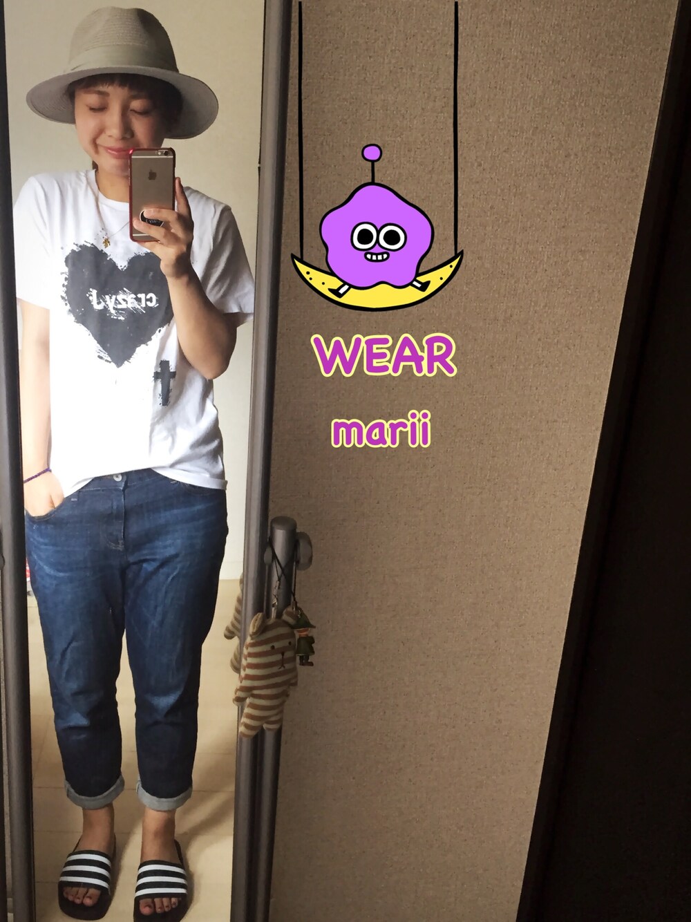 こんばんは! 今日はお休みでしたー。 久しぶりにお出かけコーデです。 ゆるっとくたっと! crazy J Tシャツメインです(・∀・) このデザイン、いやー、かわいいね。 インパクトあって好き。 ゆーやくんありがとうございます! 気になった方はcrazy J で検索!! 白Tシャツにはデニムでしょー とゆうことでロールアップデニム。 靴もスニーカーと悩んだけど ここはゆるっと、とゆーことで アディダスサンダル!! これ、むかーしむかし ちちが履いてたタイプらしい。 親子やねーw あとはつば広ハットでお出かけモードに。 そろそろ秋物もそろえていかなきゃー と思いながらまだまだ夏の格好です。 そしてそして!! あともーーーちょっともーちょっとで ……誕生日なんです(´・△・`) とゆーことでプレゼントいただきました!♡ IL BISONTEの長財布! めっちゃ悩んで、黒!!おっとなーw 皮のいい香り♡ 女子のこの年齢になると 嬉しいのか嬉しくないのか よくわからなくなってきますねw あ、プレゼントは いつでも受け付けてますよw よろしくお願いします♡w 今日もここまで見てくれて いいねにコメントsaveと ありがとうございます!