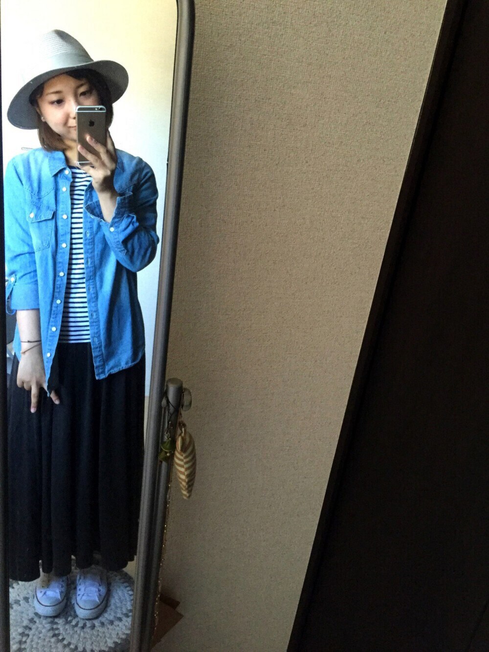 こんにちは! 今日午前中はお天気悪くて 雨降りでした。 しかーし、今快晴!! お出かけします!! とゆうことでお出かけコーデ。 雨降った後なんでむしむししてます。 ワンピースひっぱりだしてきました。 このグレーのワンピース、 生地感とかふんわり感が大好き。 お気に入りのボーダートップスと 明るめのデニムシャツで春っぽくなったかな? ボーダーはモテないとゆう噂ですが 大好きなんで関係ないです。w 自分が気に入って好きなコーデを 好きだと言ってくれる方がいいです。w さぁ、準備できたのでいってきます!