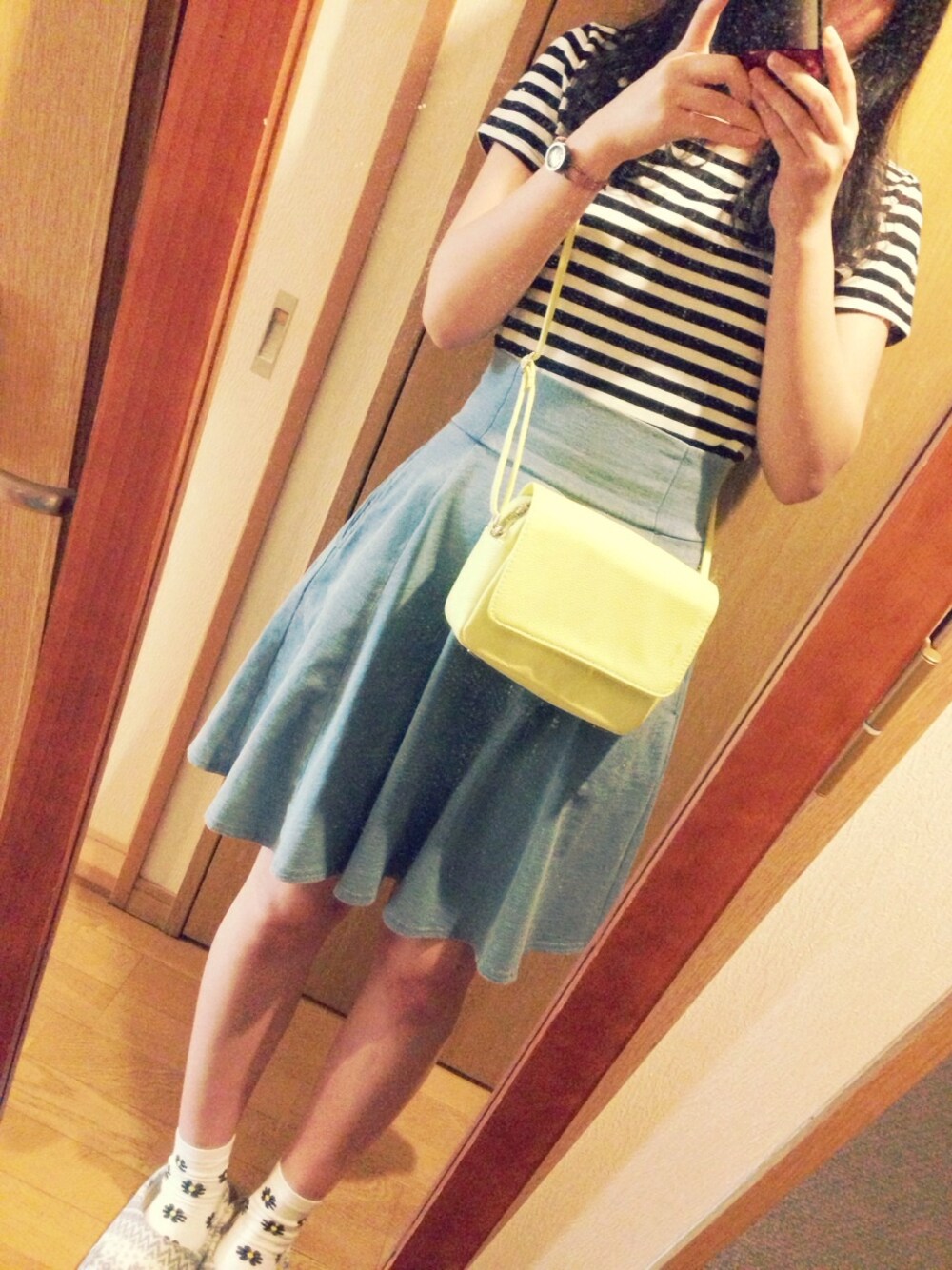 初めて投稿します🙌 お気に入りのM丈フレアスカート まだこのコーデでは肌寒いので アウターやパーカを着てます♥︎