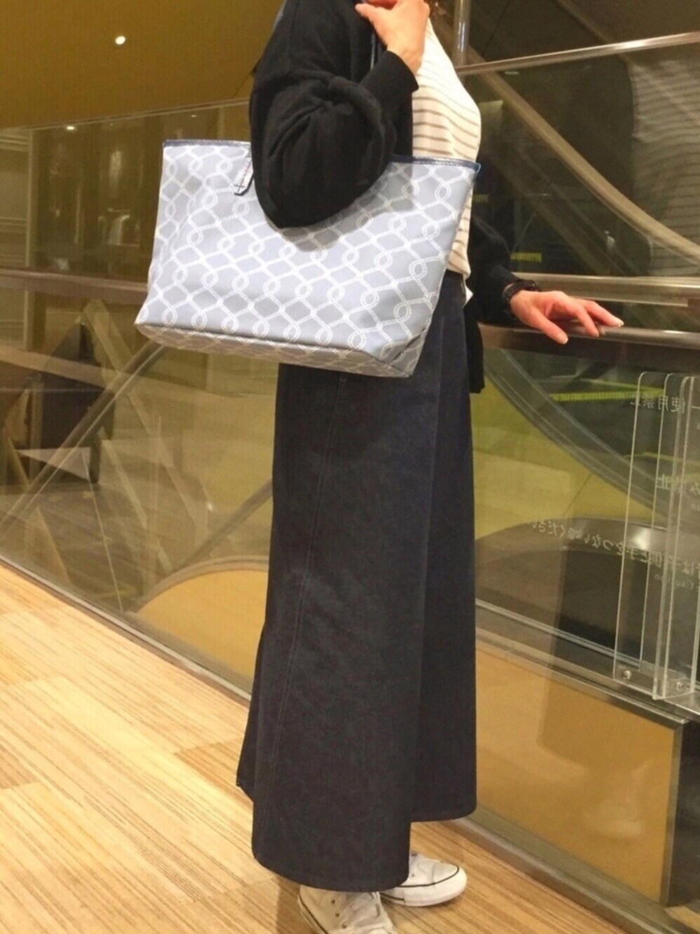 marronのトートバッグ「【日本製】ロープ柄PVC加工・A4トートバッグ」を使ったコーディネート