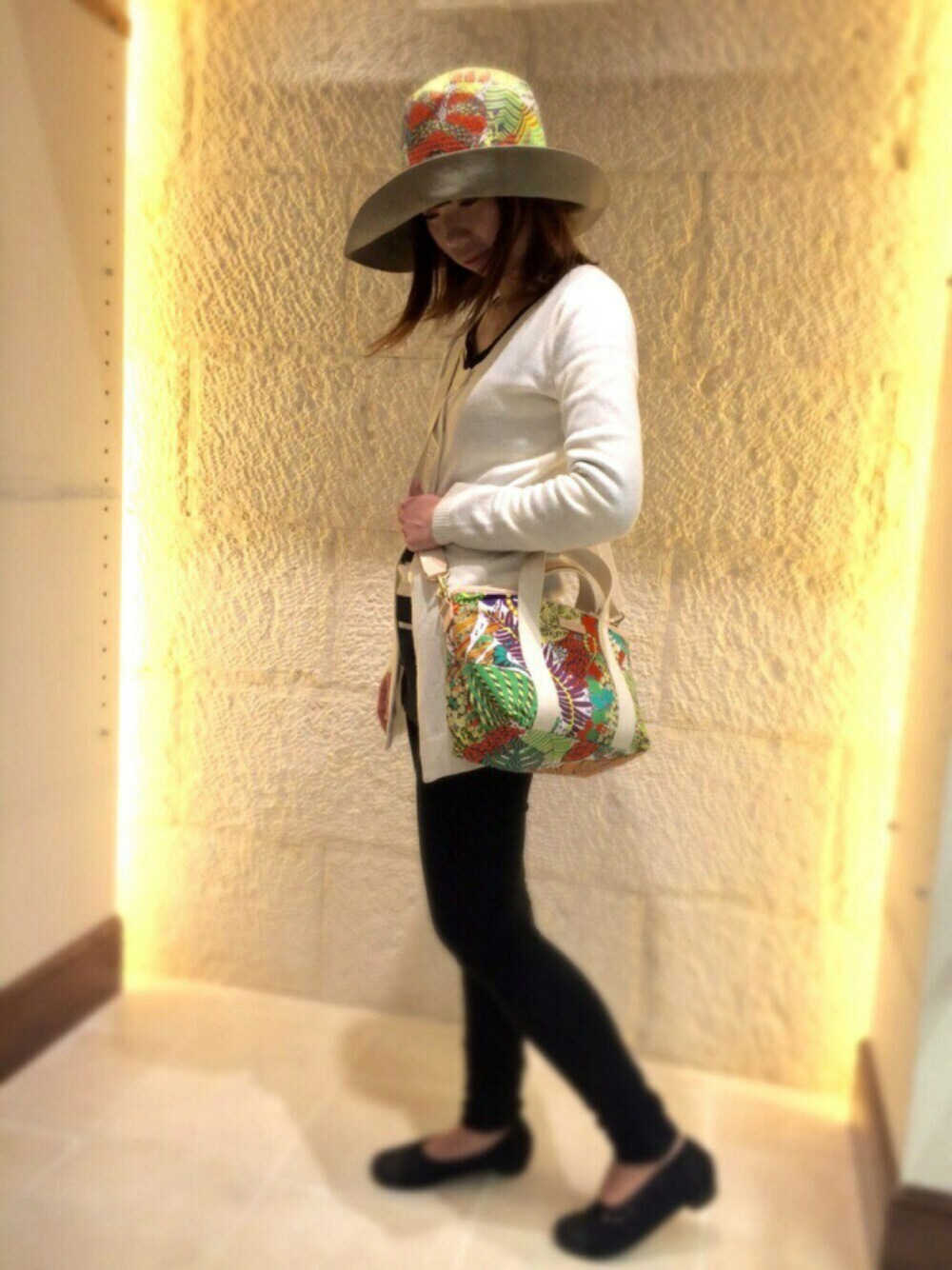 marronのトートバッグ「メモリーツイル・リバティプリント2WAYミニトートバッグ」を使ったコーディネート