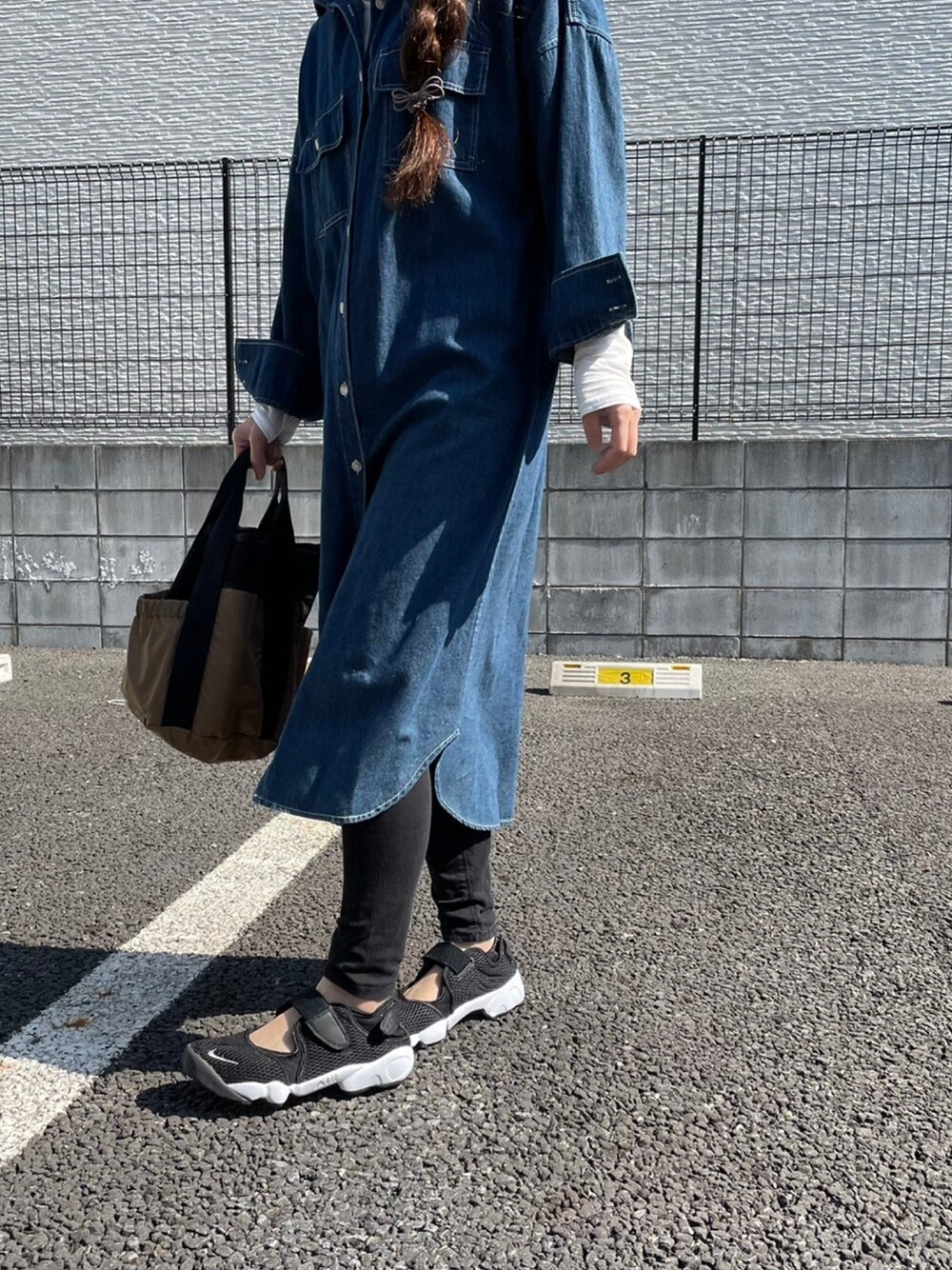 mのシャツワンピース「ロングデニムシャツ」を使ったコーディネート