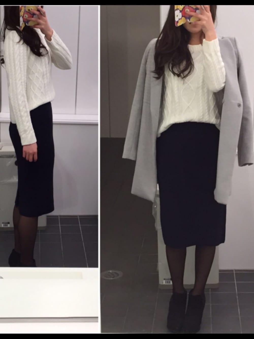 シンプルだけど、カジュアル過ぎずで意識しました^ ^ 最近寒くなってきたからスカートも膝下の丈でニット生地だとすごくあたたかーく過ごせました*\(^o^)/* 足元がスラッと見えるように今日はハイヒールです^ ^