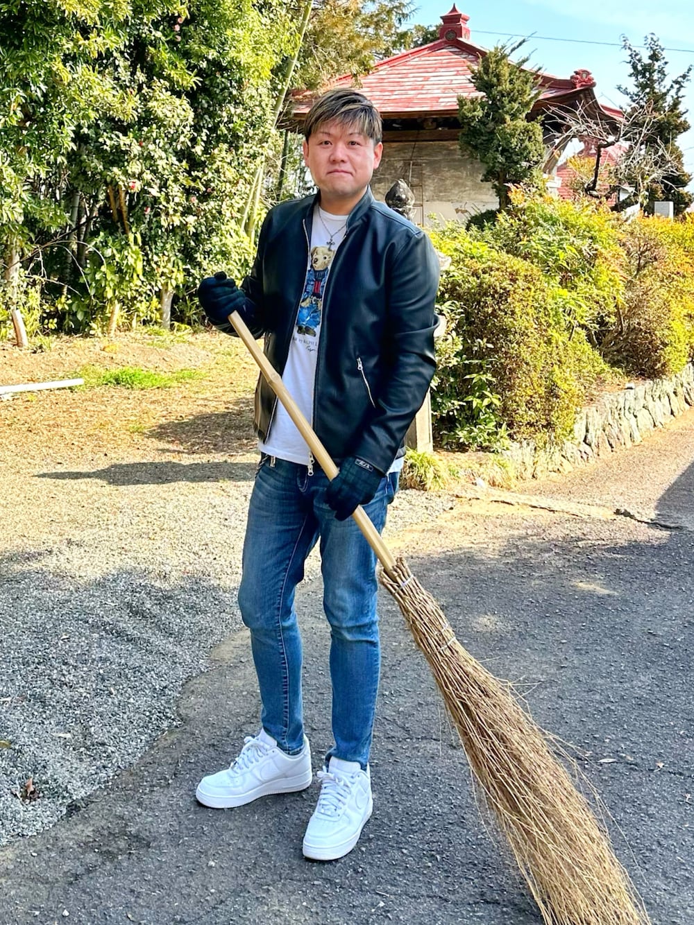 月始めにお寺掃除ですが今日はランチで会食なのでこのコーデにしました