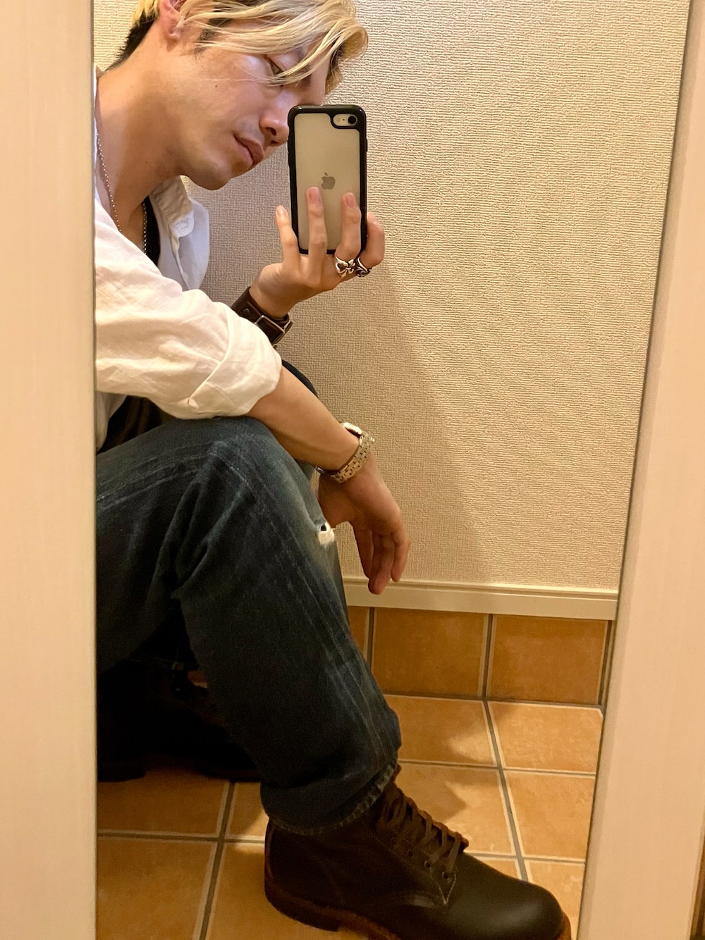 初めて外で履いたよ!! かっこいいし歩きやすい!! 最高だ✨ 白シャツとデニムという大人な雰囲気にも、しっくり来るよ👍