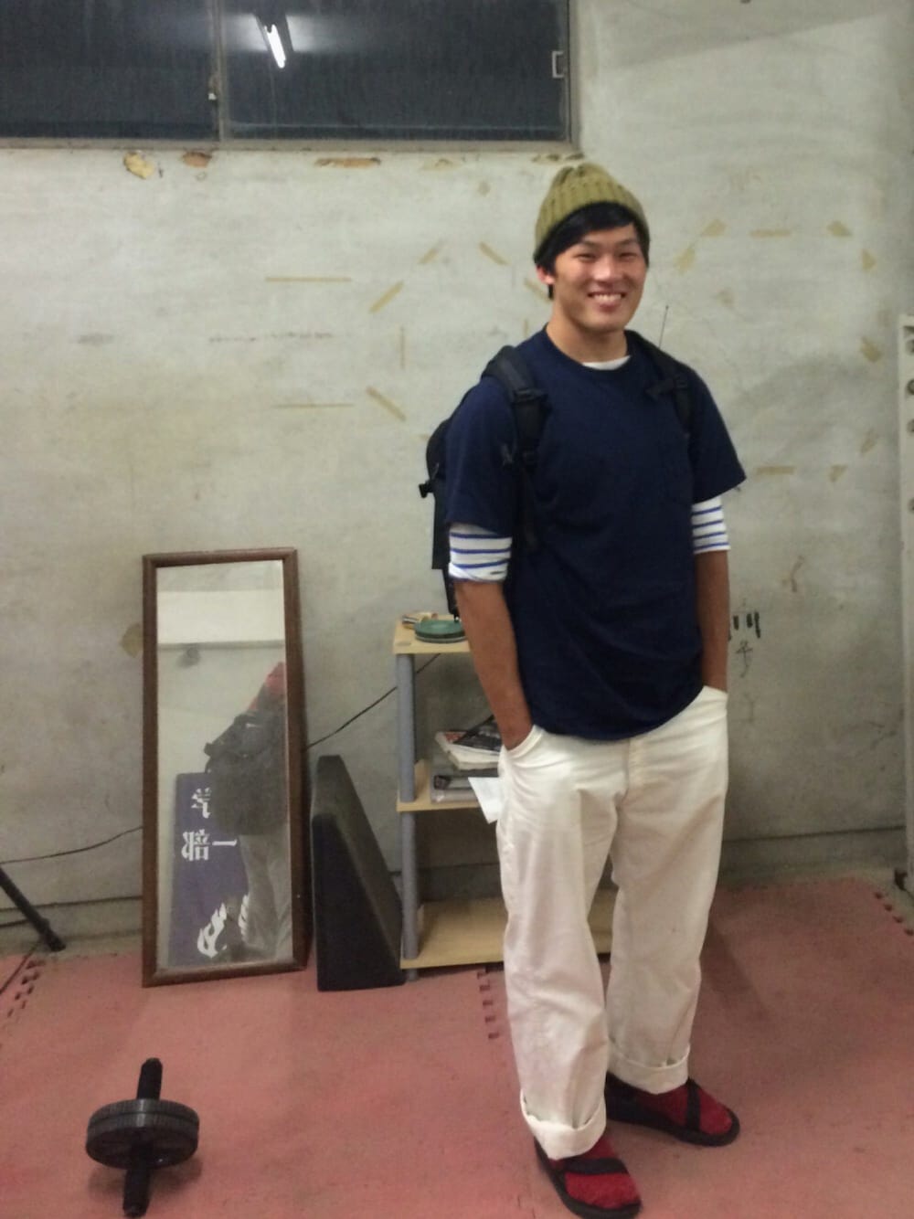 部のウエイトルームで。汚い ん、ちょっと寒いな、上着はおろっかな、ぐらいのこの気温が好き
