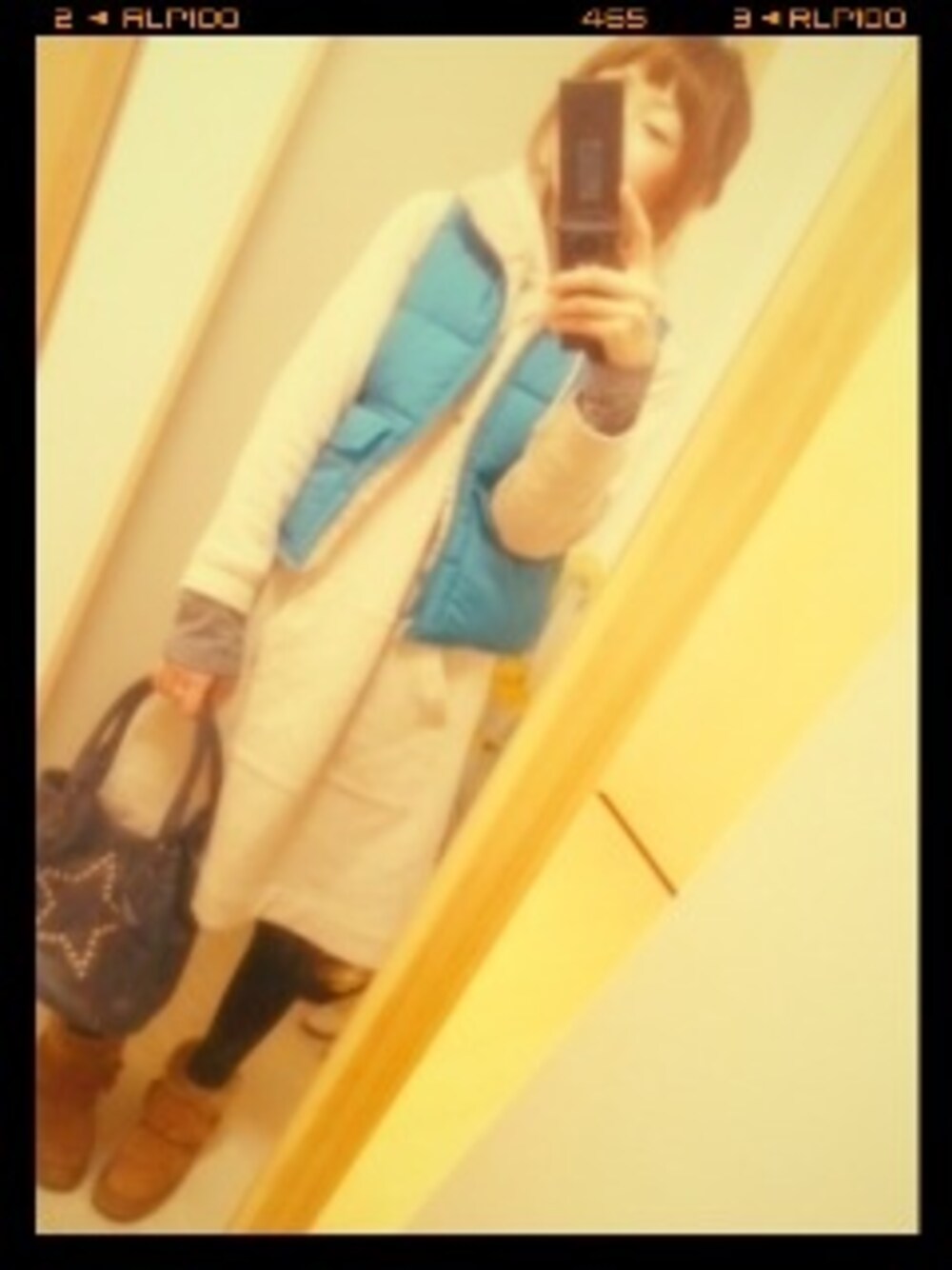 h a n a c oのダウンベスト「ブルーモコモコベスト!」を使ったコーディネート