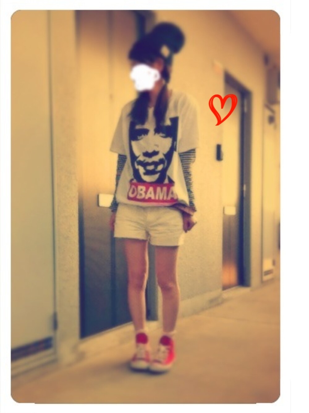 12☆ ニット帽とオバマTシャツは 彼氏くんからもらったー(◍•ᴗ•◍)♡ Tシャツはボーダーのカットソーに 合わせてみました ★