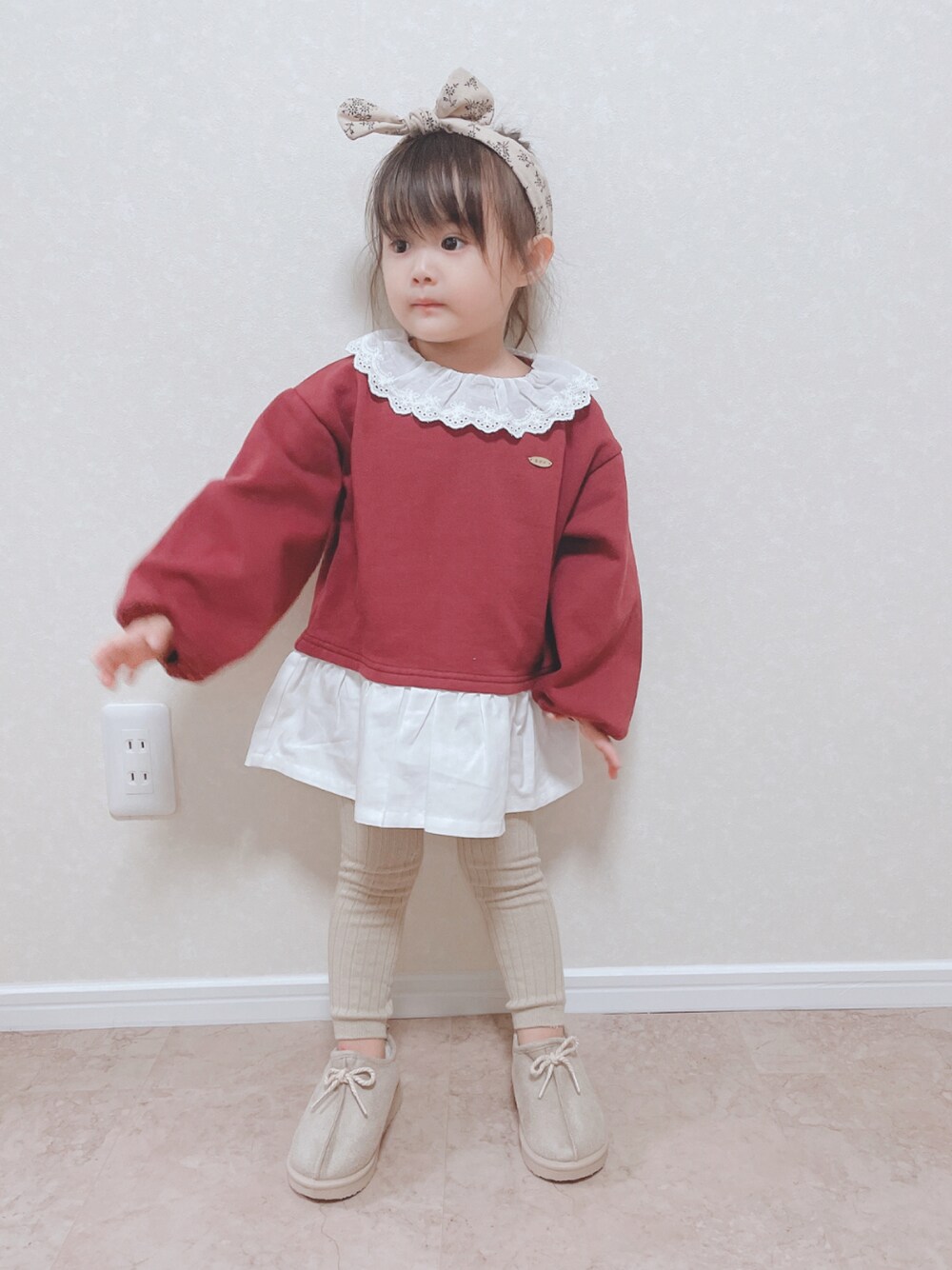 ヘアバンド→しまむら トップス→しまむら タイツ→しまむら ブーツ→西松屋 igやってます→ @marucoboro